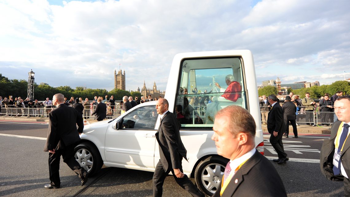 Events Timeline > Day One > Day Three > Day Four > Popemobile Routes > Papal Liturgies > Papal Visit Booklet > Reflection >Benedict XVI flew to London and took up temporary residence at the Apostolic Nunciature in Wimbledon. The first public engagement on Friday morning was a celebration of Catholic Education at St Mary’s University College, Twickenham. Next came a meeting with representatives of other religions and people of faith in the University’s Waldegrave Drawing Room. Pope Benedict then traveled to central London to spend time with the Archbishop of Canterbury at Lambeth Palace before visiting parliament to give an address to civil society in Westminster Hall. The day concluded with a celebration of Evening Prayer at Westminster Abbey.